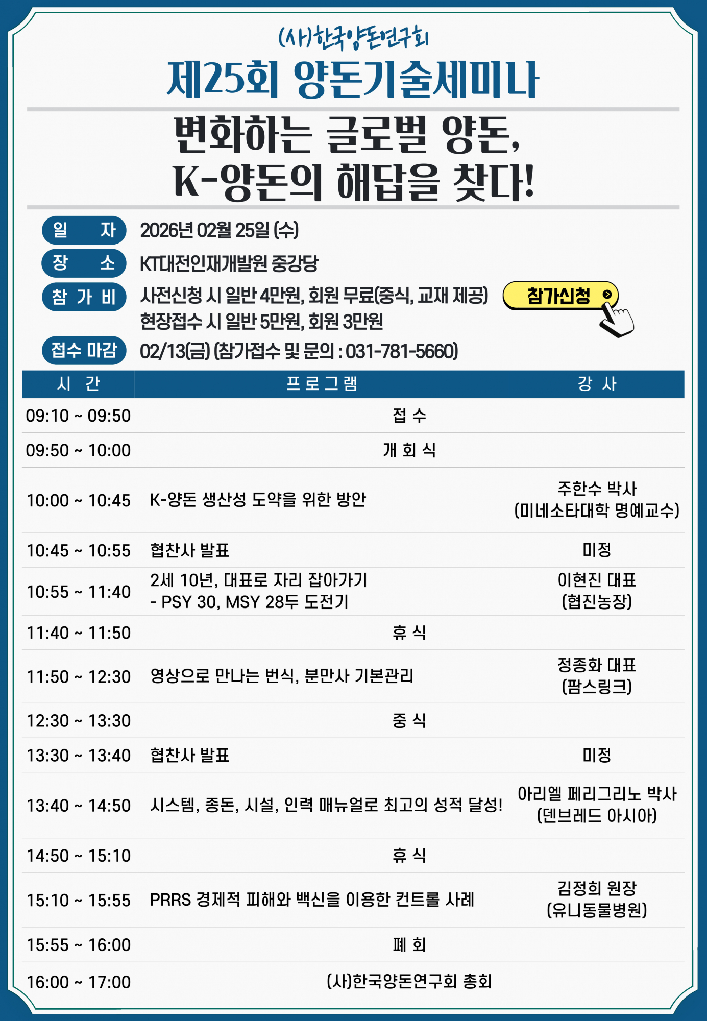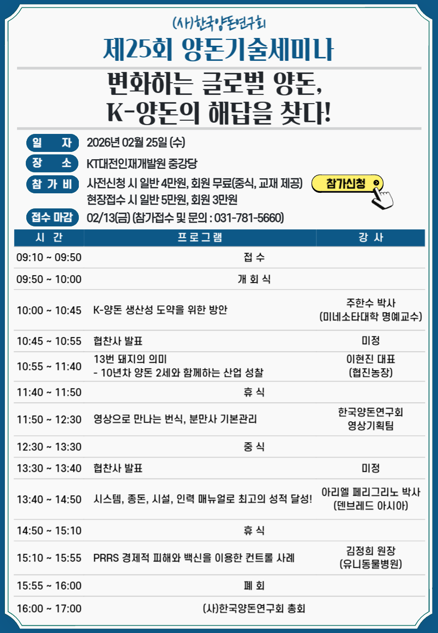 제25회 양돈기술세미나 및 정기총회 개최 안내!!!!